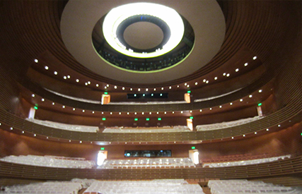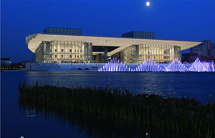工程介紹:天津市文化中心大劇院是天津文化中心的核心建筑,位于天津城市核心位置,緊鄰市委、市政府和天津迎賓館。大劇院長220米、寬206米,高45米,其中建筑本體7萬平方米,地下設(shè)施3萬平方米,3個建筑單體位于6米臺基之上,由一個大屋頂連接。大劇院定位為綜合性多功能藝術(shù)創(chuàng)作與演出機構(gòu),由歌劇廳、音樂廳和小劇場組成。劇院總共3200個座位,一層和四層各設(shè)排練廳,還同時設(shè)有可供700人同時就餐、面積約7000平方米的中、西餐廳及附屬設(shè)施,6米臺基下設(shè)有商業(yè)空間約5500平方米,可作為針對城市高端文化消費人群的藝術(shù)培訓(xùn)和藝術(shù)品經(jīng)營場地。大劇院設(shè)有3個貴賓廳(175平方米、126平方米、50平方米),擁有約400個停車位。大劇院面向湖面,利用親水平臺創(chuàng)造出寬敞的公共空間,形成開放的“城市舞臺”,既可供市民休憩、觀景,也能滿足室外多功能表演的需求。